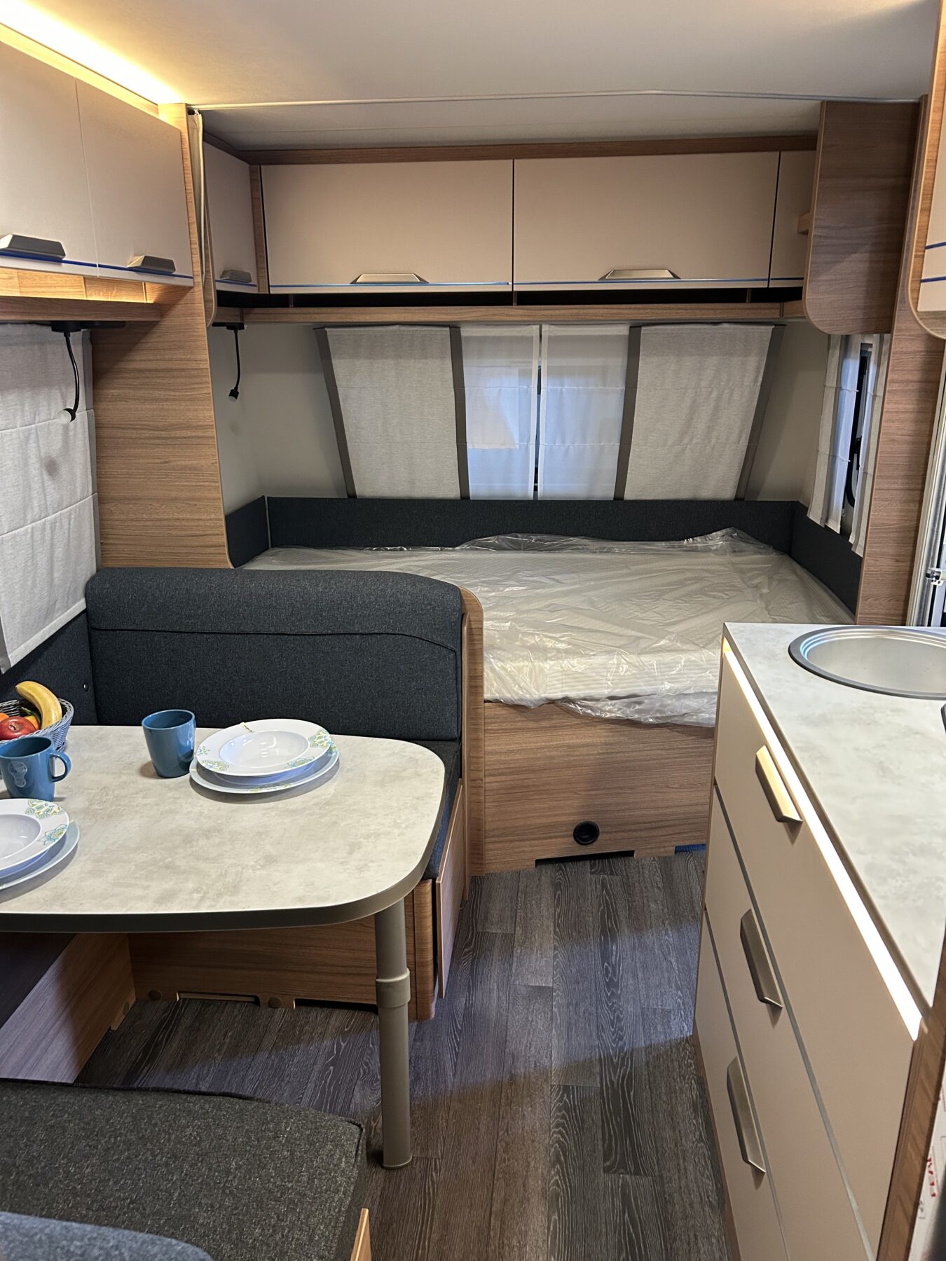 CARAVAN 6 POSTI -KM 0 – LETTO MATRIMONIALE, LETTI CASTELLO, BAGNO CON DOCCIA SEPARATA . PESO COMPLESSIVO KG1400