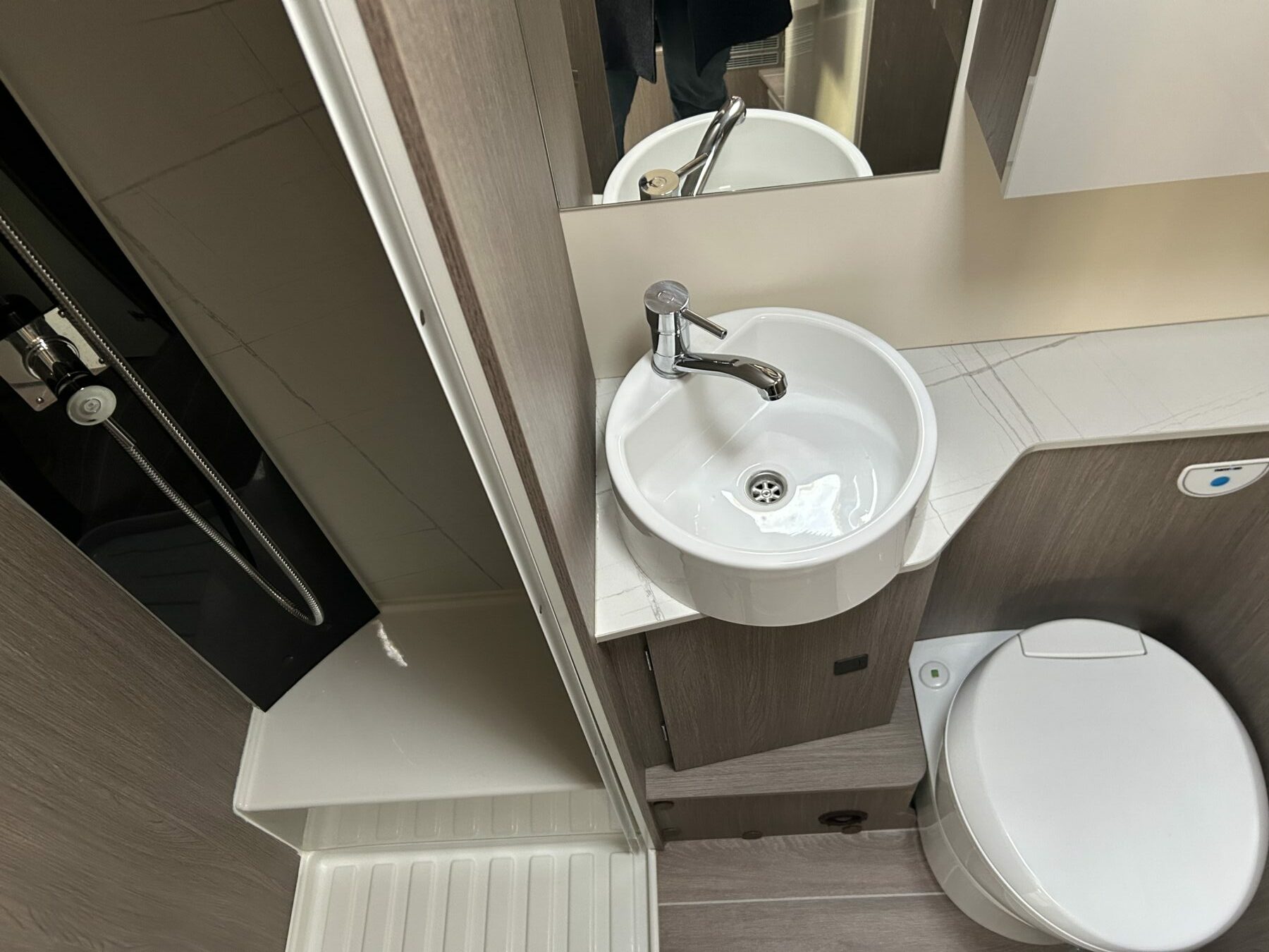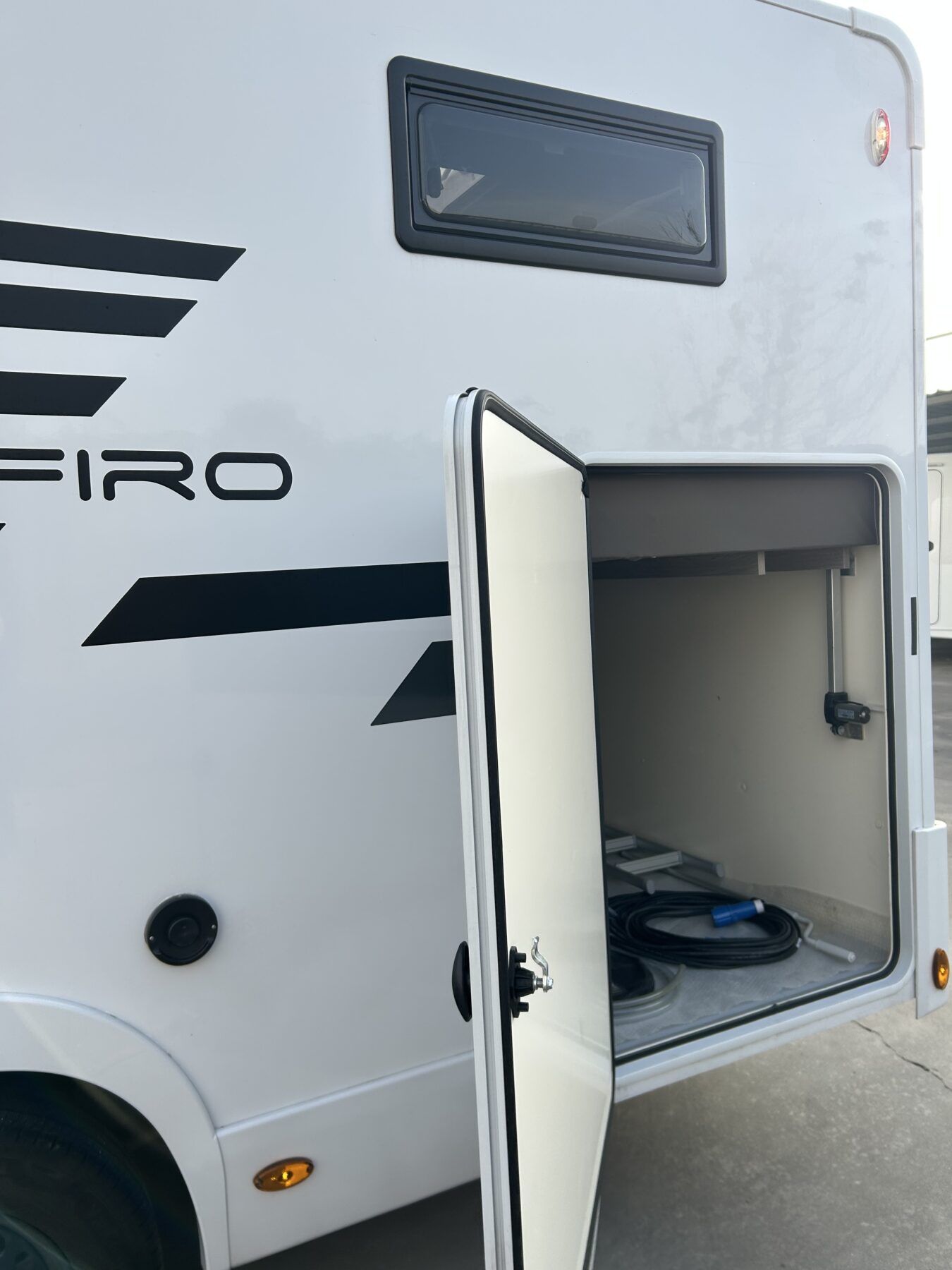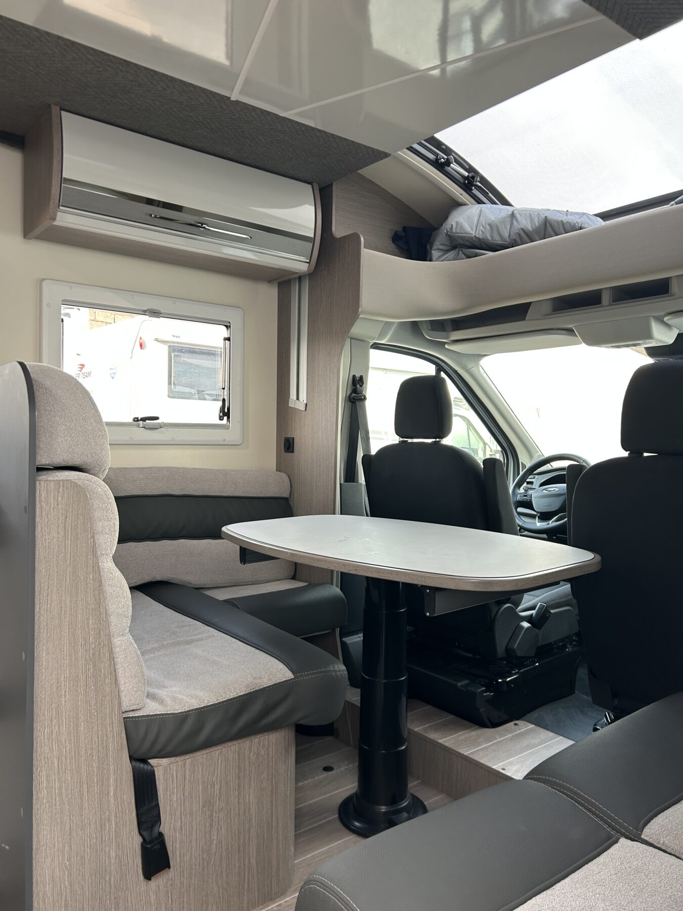 LETTO TRASVERSALE POSTERIORE SALI/SCENDI, AMPIO GAVONE POSTERIORE (Ingresso 120cm), BAGNO CON DOCCIA, AMPIA ZONA GIORNO CON LETTO BASCULANTE CHE LASCIA LIBERA LA PORTA D’INGRESSO. LUNGHEZZA 6.99CM